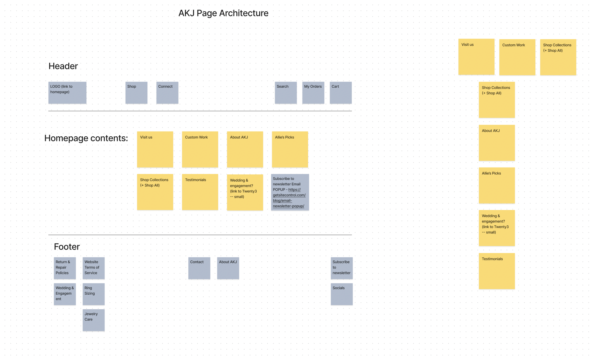 After determining what functions each site needed to serve, I listed out the pages needed to serve those functions & organized them for clear user navigation.